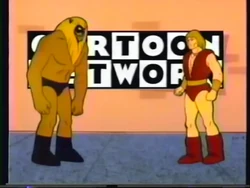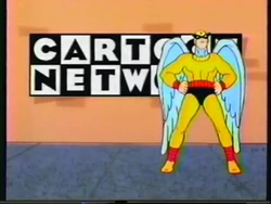 | Birdman | (stock heroic music as Birdman flies in) BIIIIIRDMAaan. Say what's this? Cartoon Network? (flies away) Groooovy! |