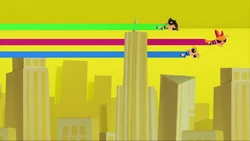 | Super Chicken | "Look up in the the sky!" "It's a seagull!" "It's a turkey!" "It's me and Super Chicken!" (Super Chicken bawks a fanfare) |